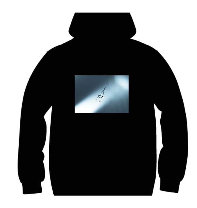 グッズvol.1のテーマ『光』のロゴ(黒)のデザインされた、雫ロゴパーカー。