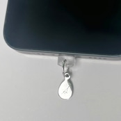 高級感のあるメタルチャームに雫ロゴの刻印が入ったスマートフォン用のダストプラグ。